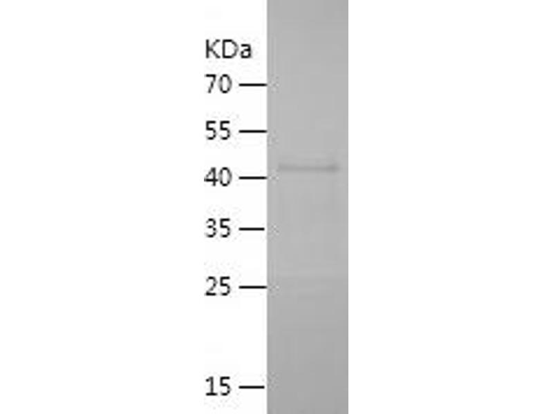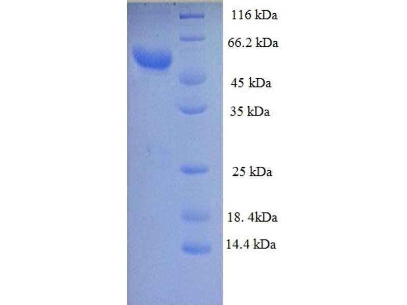The purity of the protein is greater than 95 % as determined by SDS-PAGE and Coomassie blue staining.